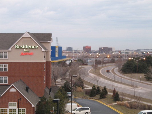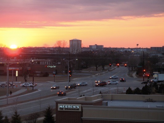 Toward the east all I see is the reflection of the sun off the glass building - and a few planes going into O'Hare.